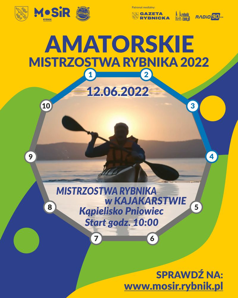 12 czerwca 2022 roku (tj. niedziela) odbyła się kolejna runda w ramach Amatorskich Mistrzostw Rybnika. Tym razem konkurencją w jakiej rywalizowali rybniczanie były zawody w kajakarstwie. Rywalizacja odbyła się na kąpielisku Pniowiec znajdującym się w Rybniku przy ul. Pniowskiej (https://goo.gl/maps/YiSYDVGkcrUSAkh5A).