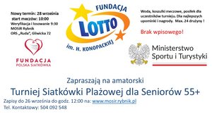 Zapraszamy mężczyzn w wieku 55+ do gry w turnieju siatkówki plażowej. Udział jest bezpłatny.