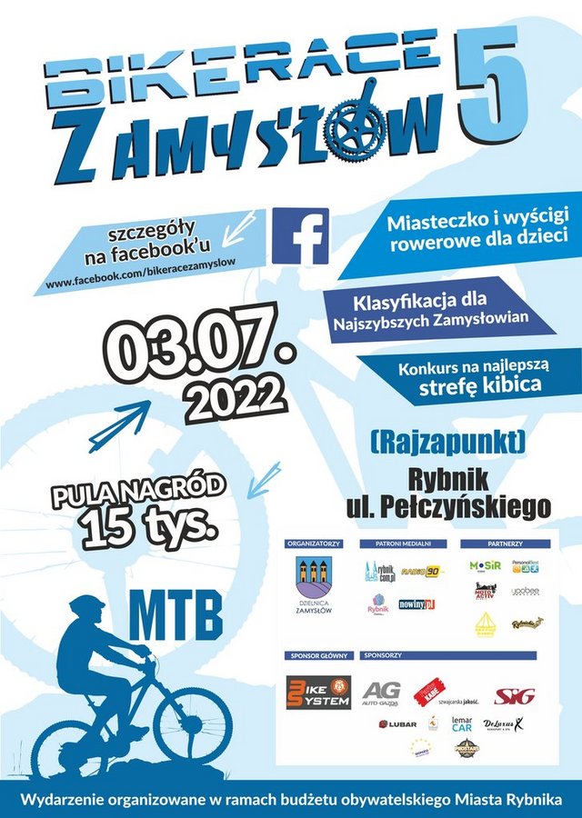 Ponadto Główny Sponsor firma BIKE SYSTEM obchodzi jubileusz 25-lecia istnienia i w związku z tym dorzucili ogromną kwotę do puli nagród, która w tym roku przekroczy ponad 15 000 zł ! Mamy nadzieję, że w tym roku będzie Was jeszcze więcej, bo naprawdę przygotowaliśmy sporo nagród do rozdania. Oprócz kategorii AMATOR 12km, SPORT 24 km oraz PRO 36 km będzie również specjalna klasyfikacja dla Najszybszych Zamysłowian i tradycyjne wyścigi dziecięce w godzinach niekolidujących z wyścigami starszych zawodników.