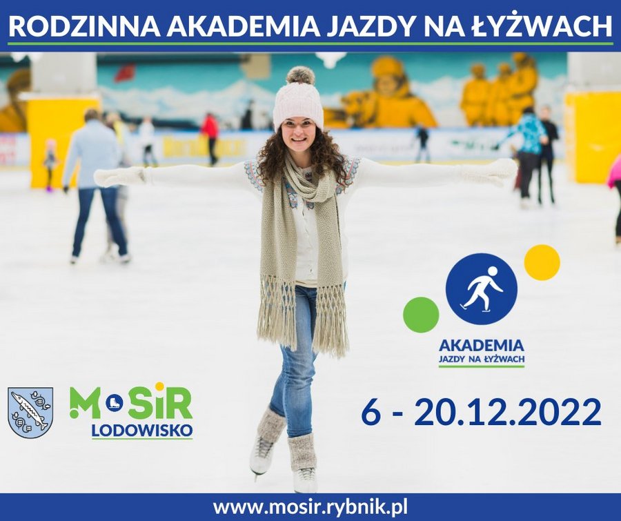 Dla uczestników Rodzinnej Akademii Jazdy na Łyżwach, MOSiR Rybnik udostępnia kaski oraz łyżwy.