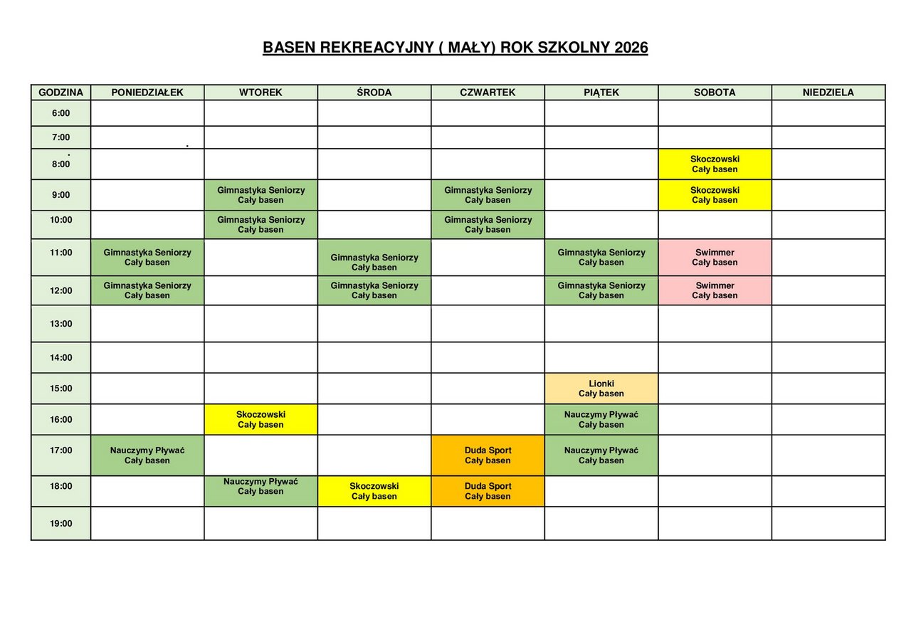 BASEN REKREACYJNY CZYNNY OD 6:00 DO 20:00