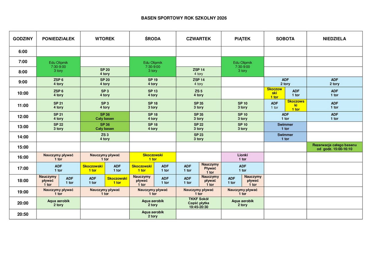 BASEN SPORTOWY CZYNNY OD 6:00 DO 22:00