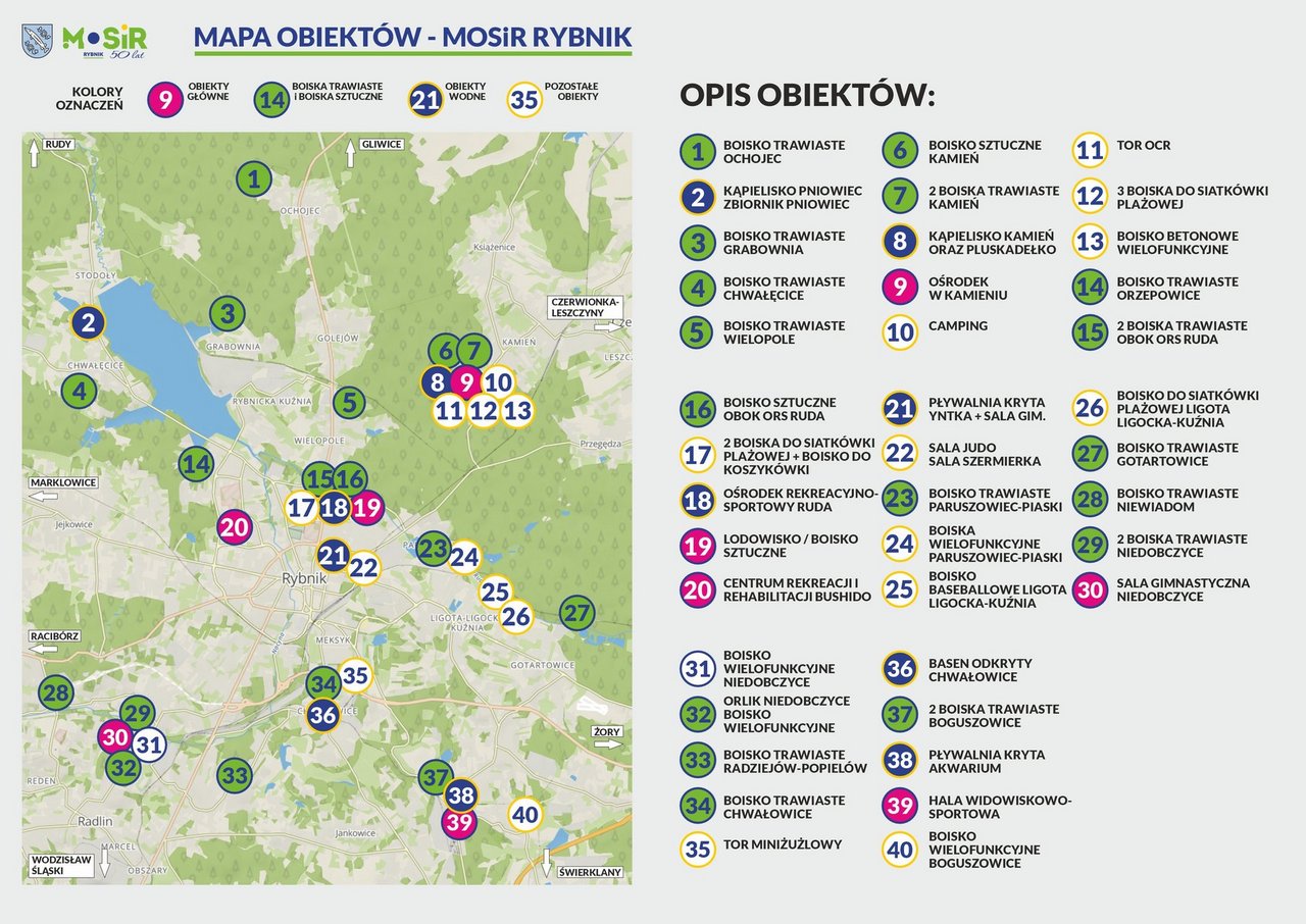 Mapa obiektów MOSiR w Rybniku - pobierz PDF